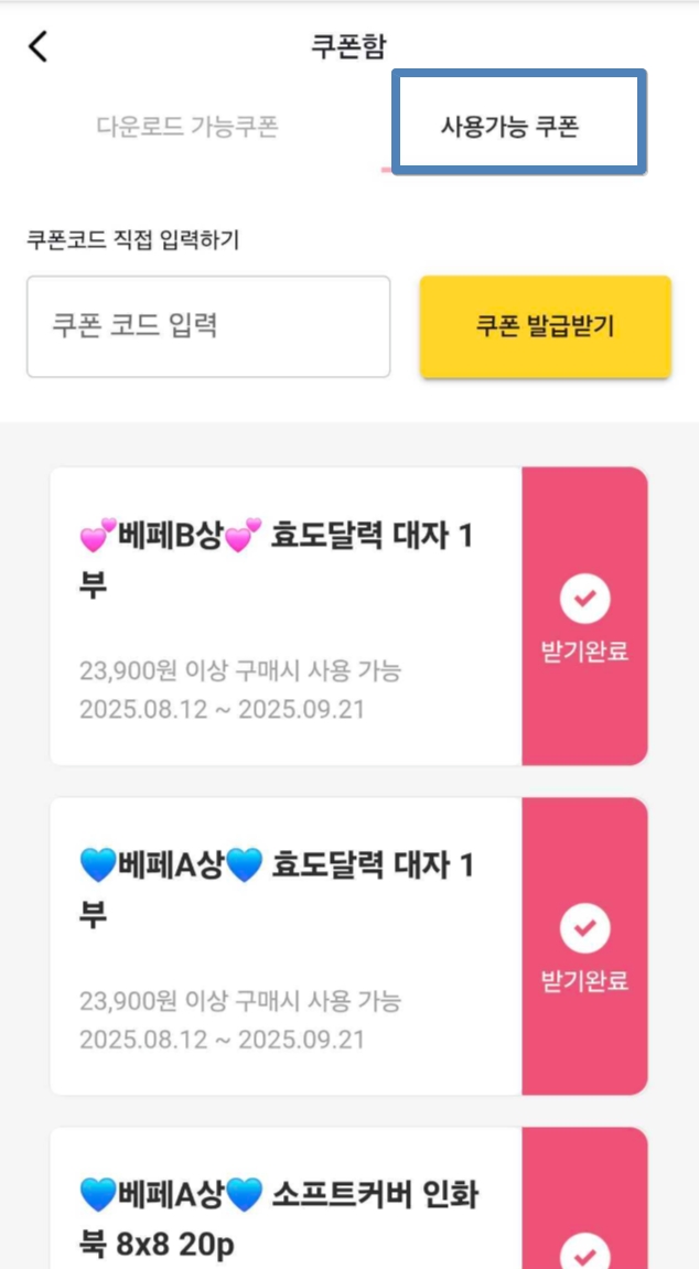 - 쿠폰의 유효기한을(25년8월25일-25년9월21일) 확인해 주세요.