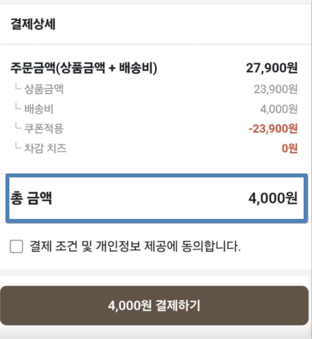 - 배송시 결제되는 배송비 4,000원에 환불 규정에 대해 확인해 주세요